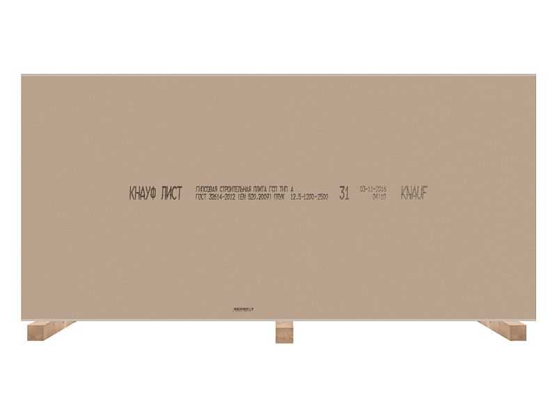 Гипсокартон Knauf 12.5x1200x3000 стандартный